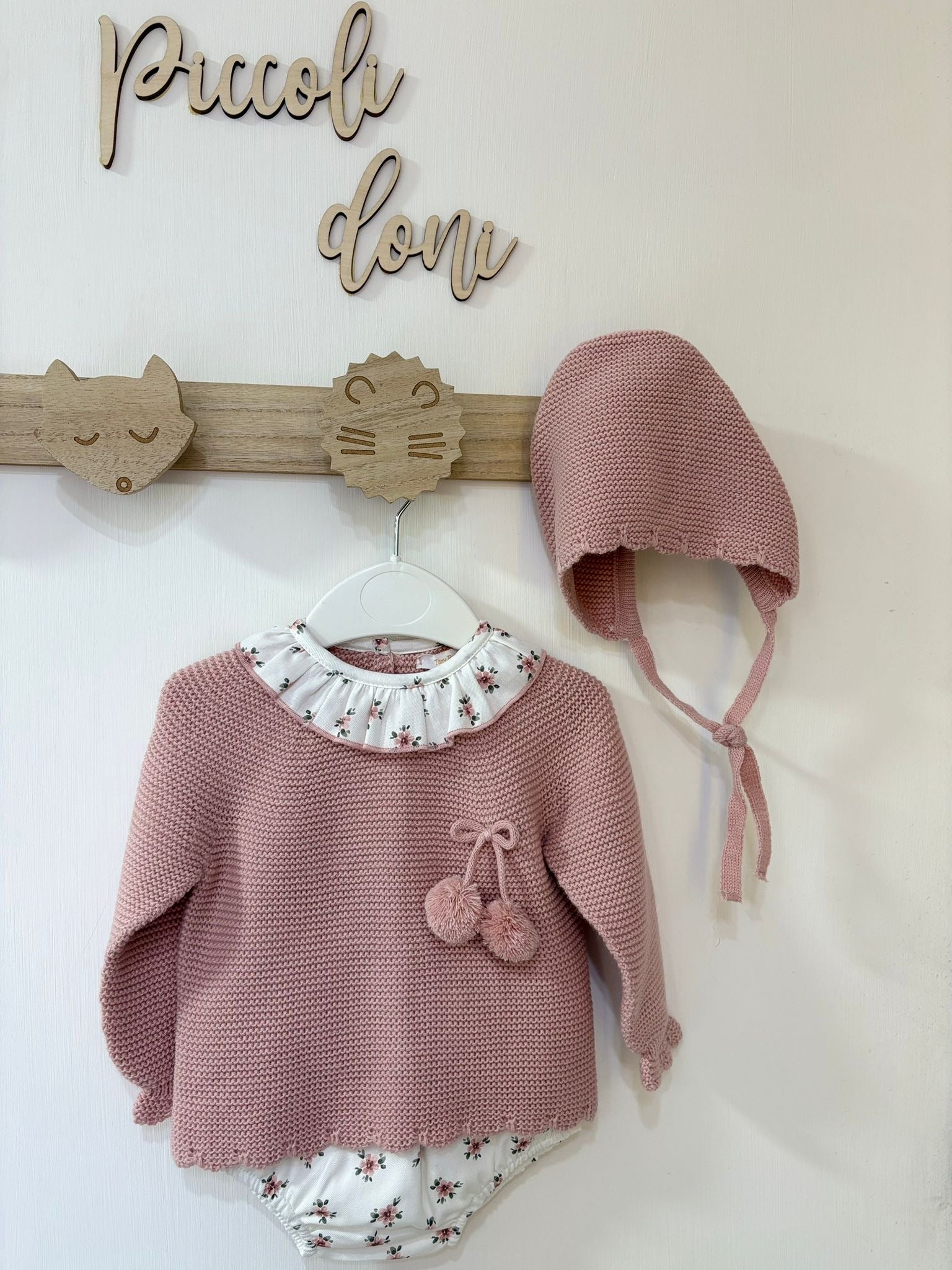 Maglioncino e cuffia in acrilico invernale e Culott in cotone invernale