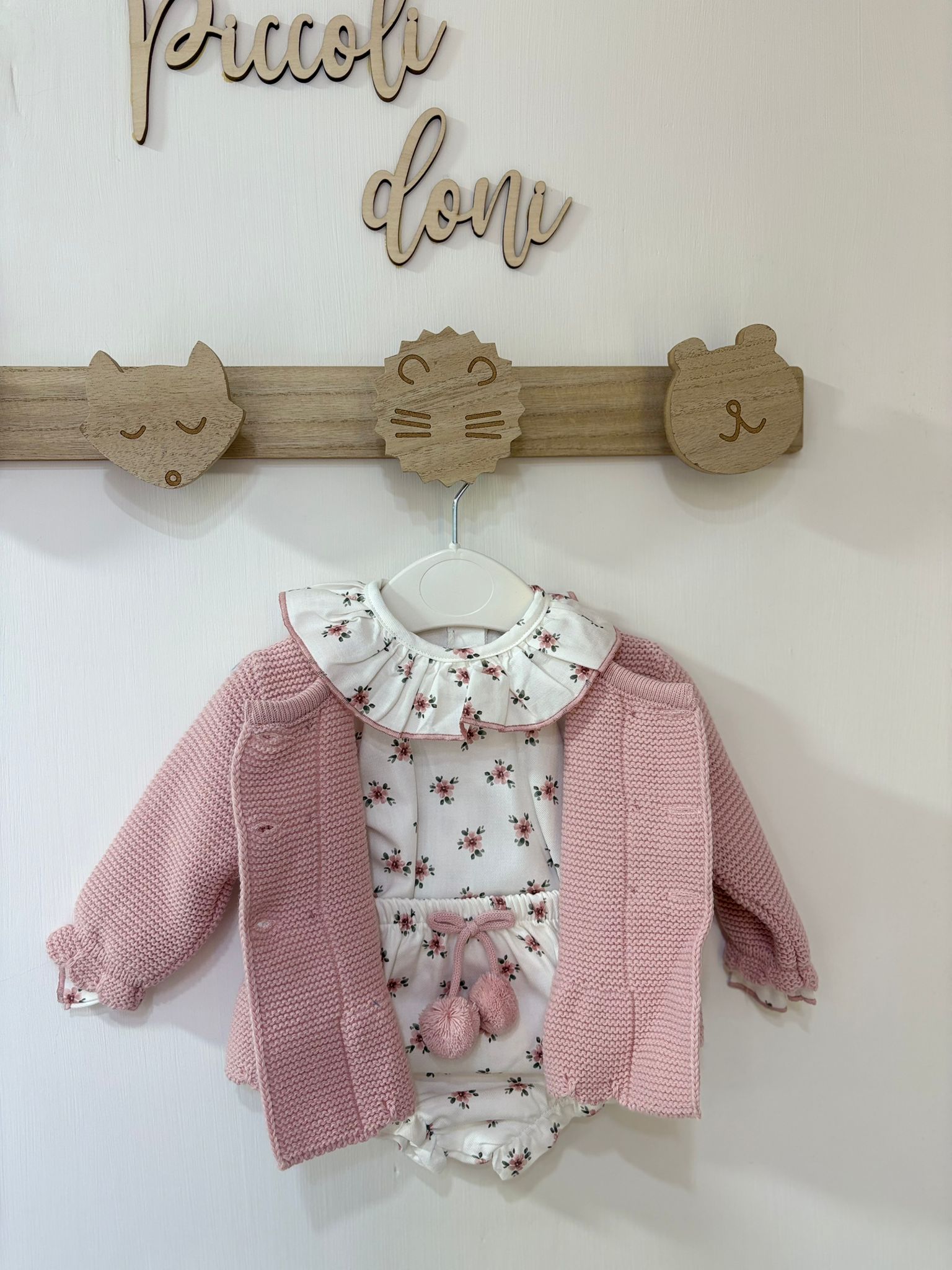 Camicia con Culott fiorata in cotone invernale e cardigan in acrilico invernale