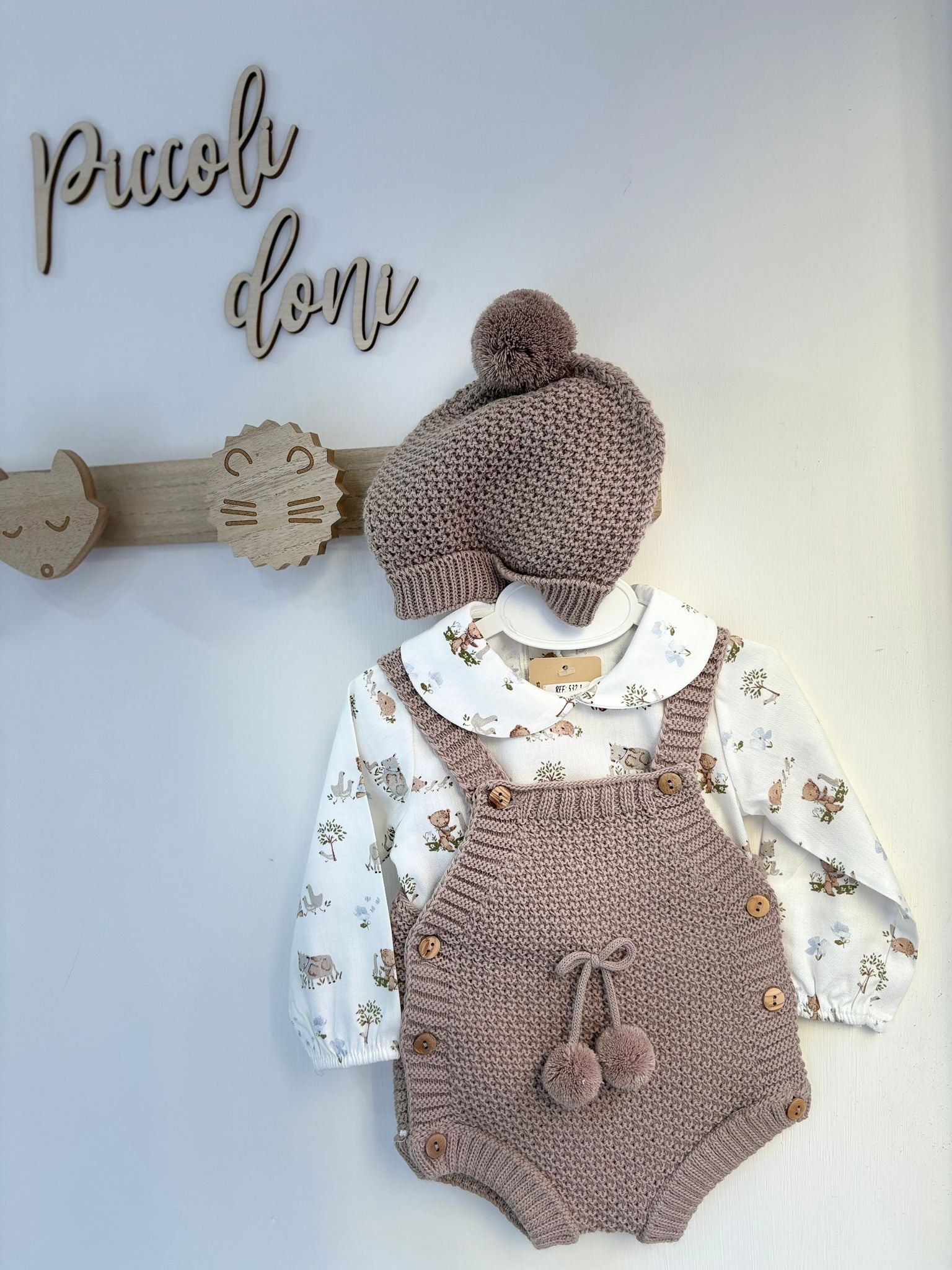 Salopette con cappello in acrilico invernale e camicia in cotone invernale