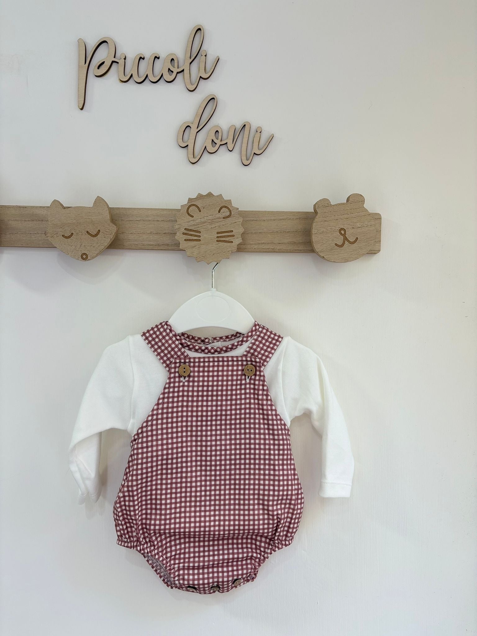 Salopette quadretti in cotone invernale e maglietta in caldo cotone