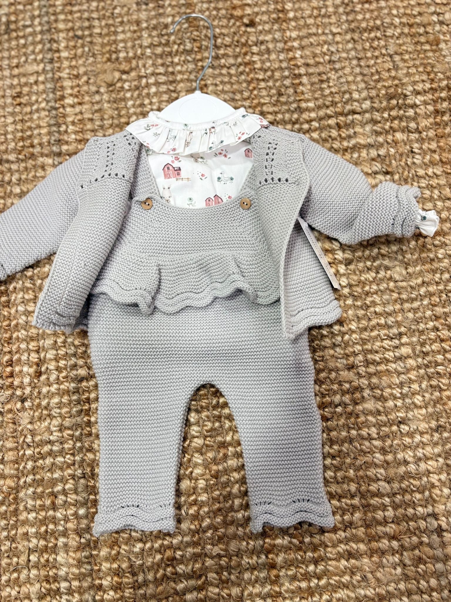 Salopette e cardigan in acrilico invernale con camicia fantasia in cotone invernale