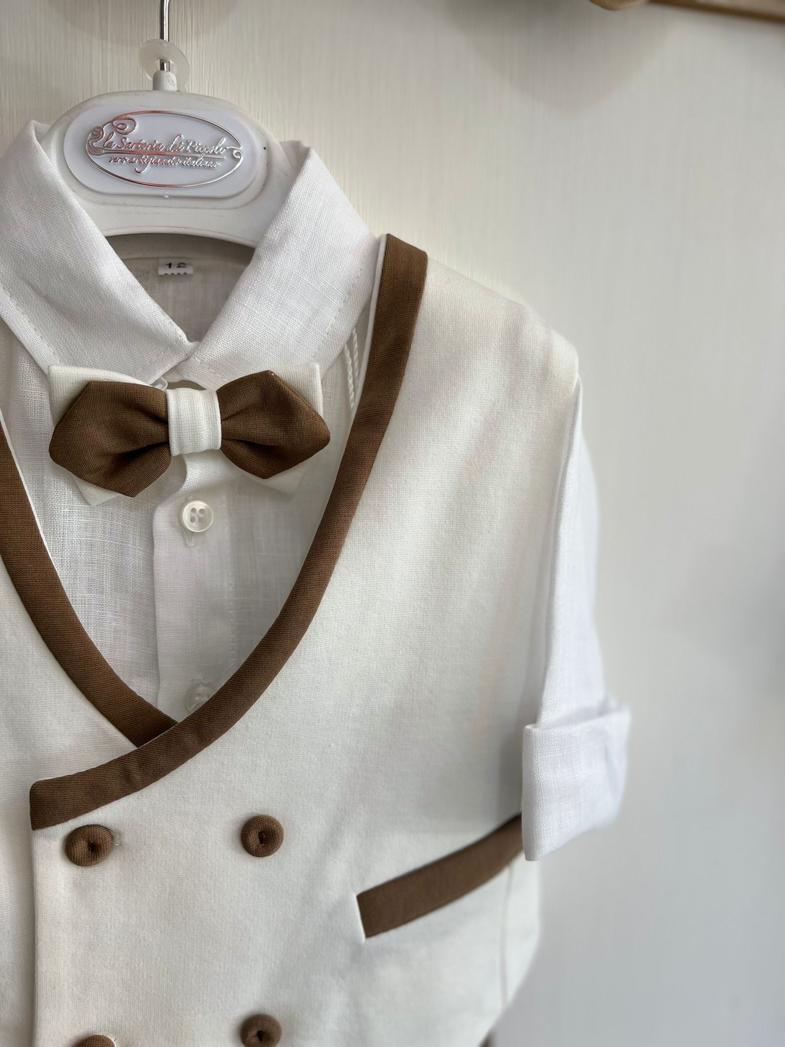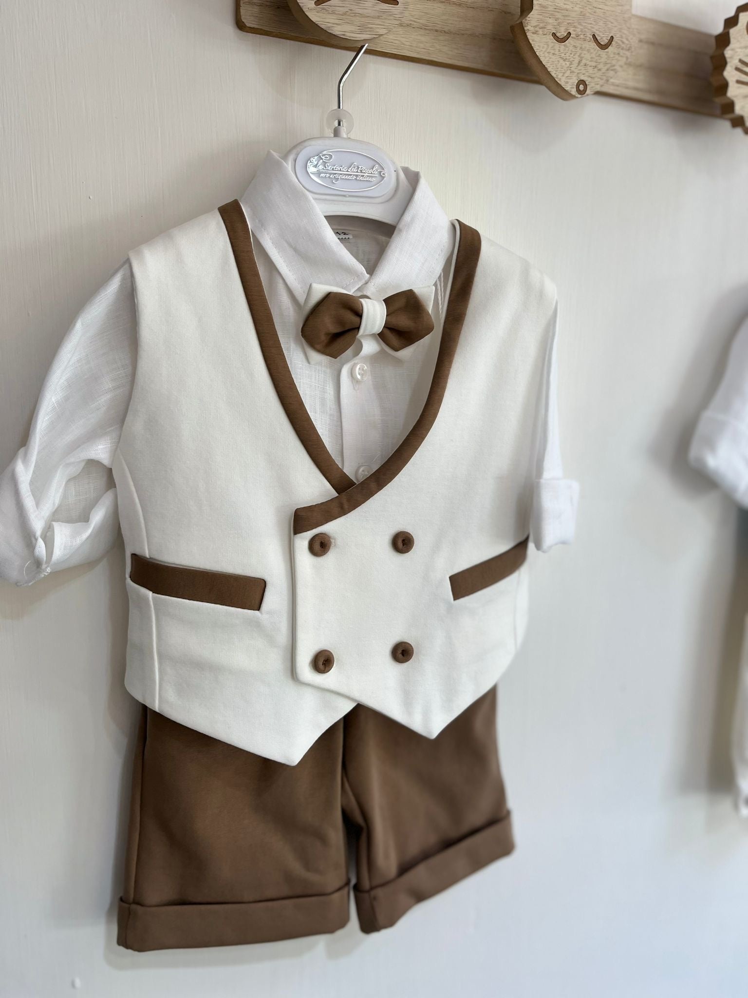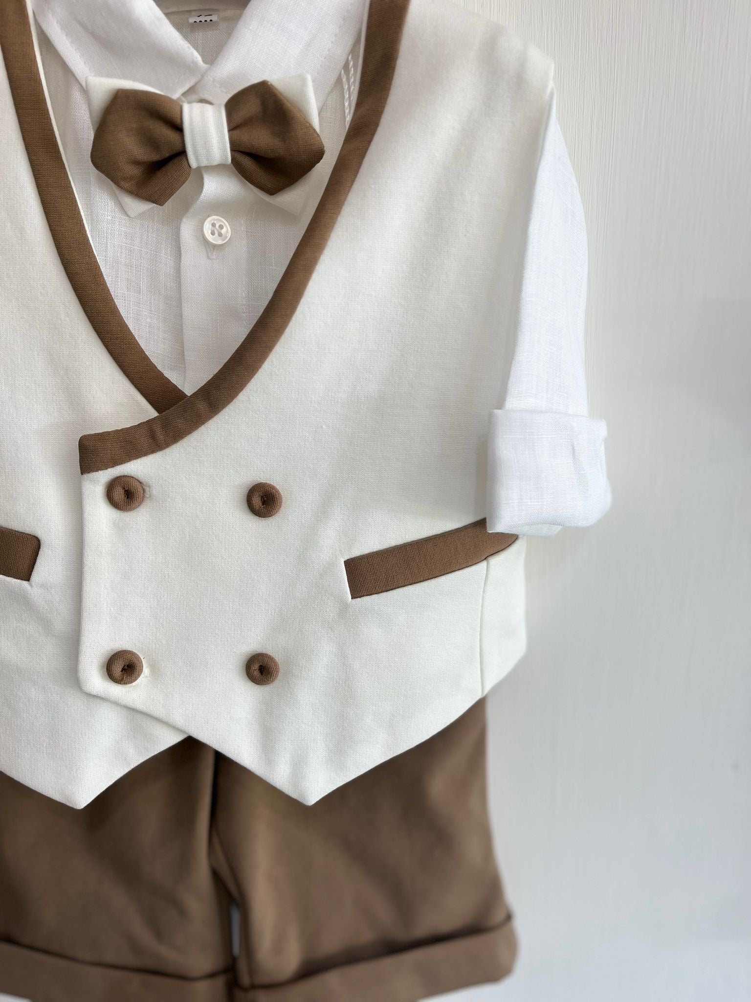 Pantaloncino con camicia in lino,papillon e panciotto