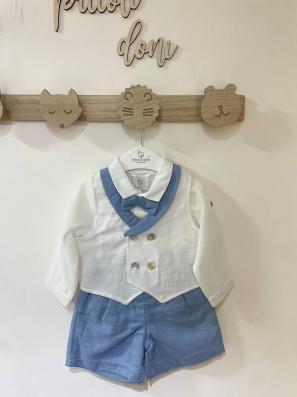 Camicia con pantaloncino,panciotto e papillon in lino