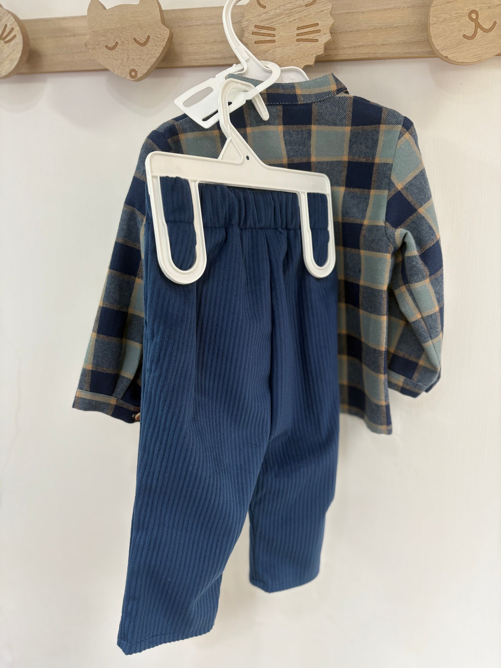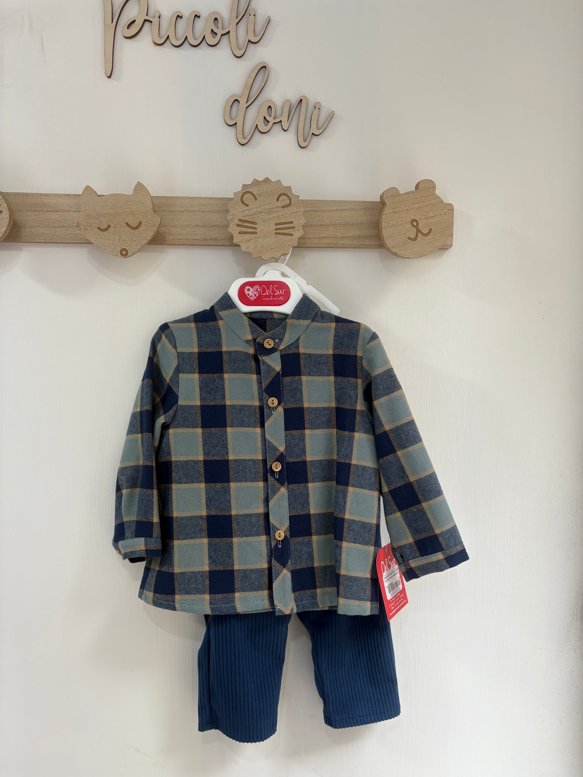 Camicia quadri in cotone invernale con pantalone in vellutino a costine