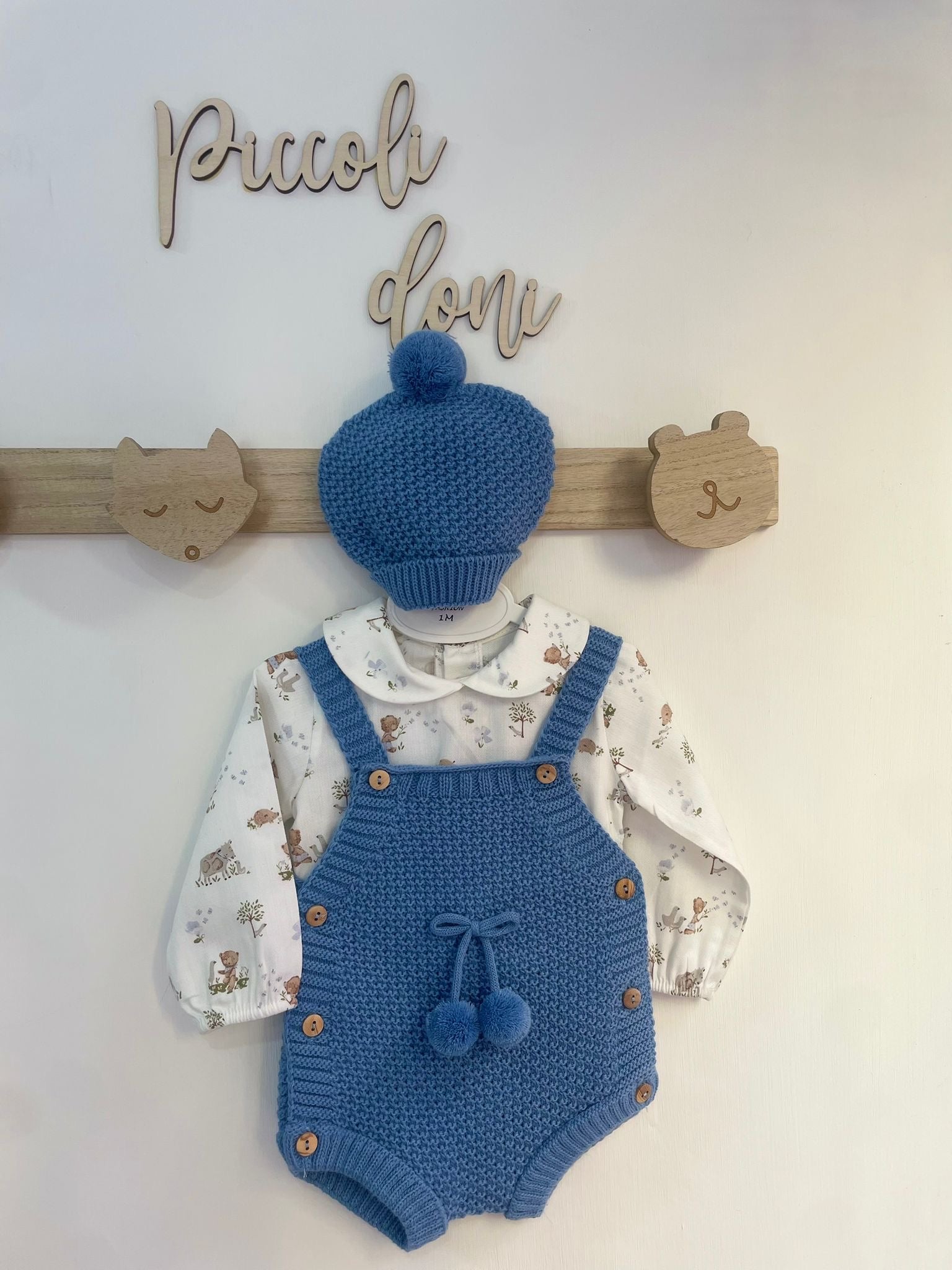 Salopette con camicia in cotone invernale e cappello acrilico invernale