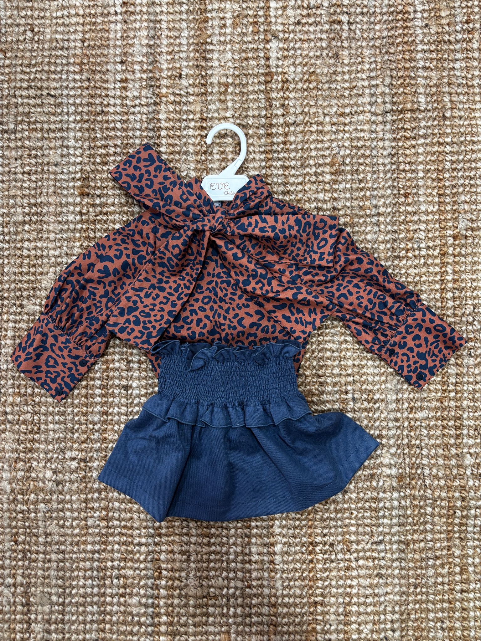 Camicia fantasia leopardata con gonna con molla grossa in vita in cotone invernale