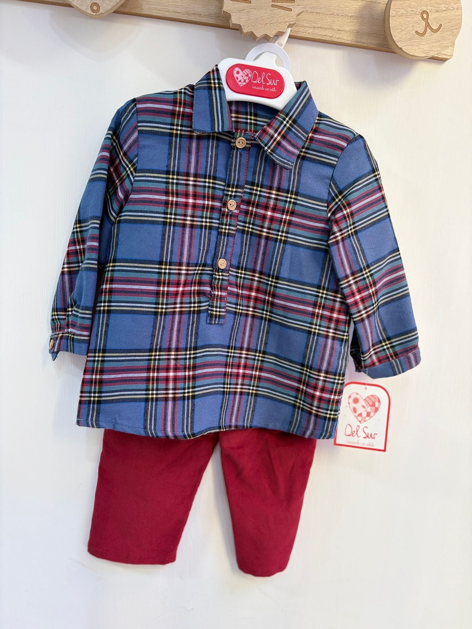 Pantalone in vellutino con camicia scozzese in cotone invernale