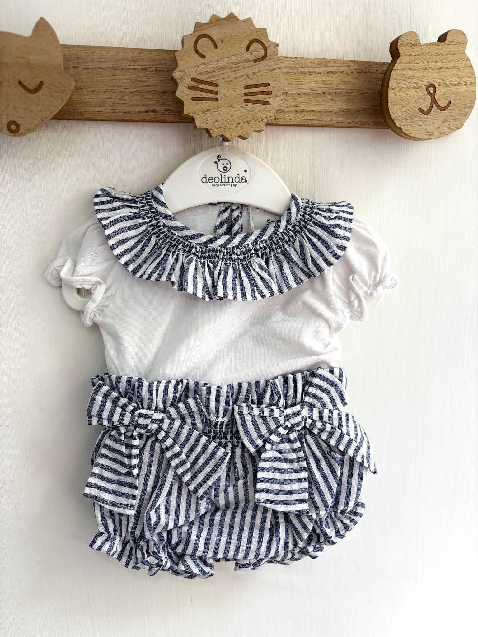 Copri pannolino a righe con fiocchi e maglietta con colletto