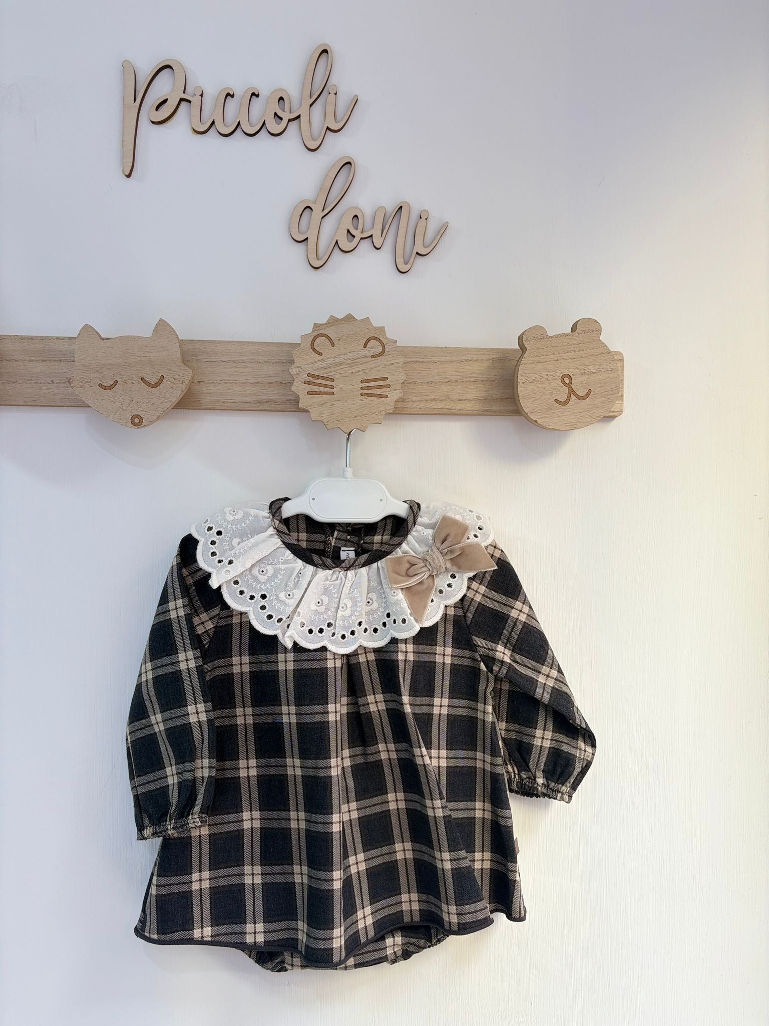 Mini abitino con collo largo e fiocco in velluto di lato e braga cotone invernale