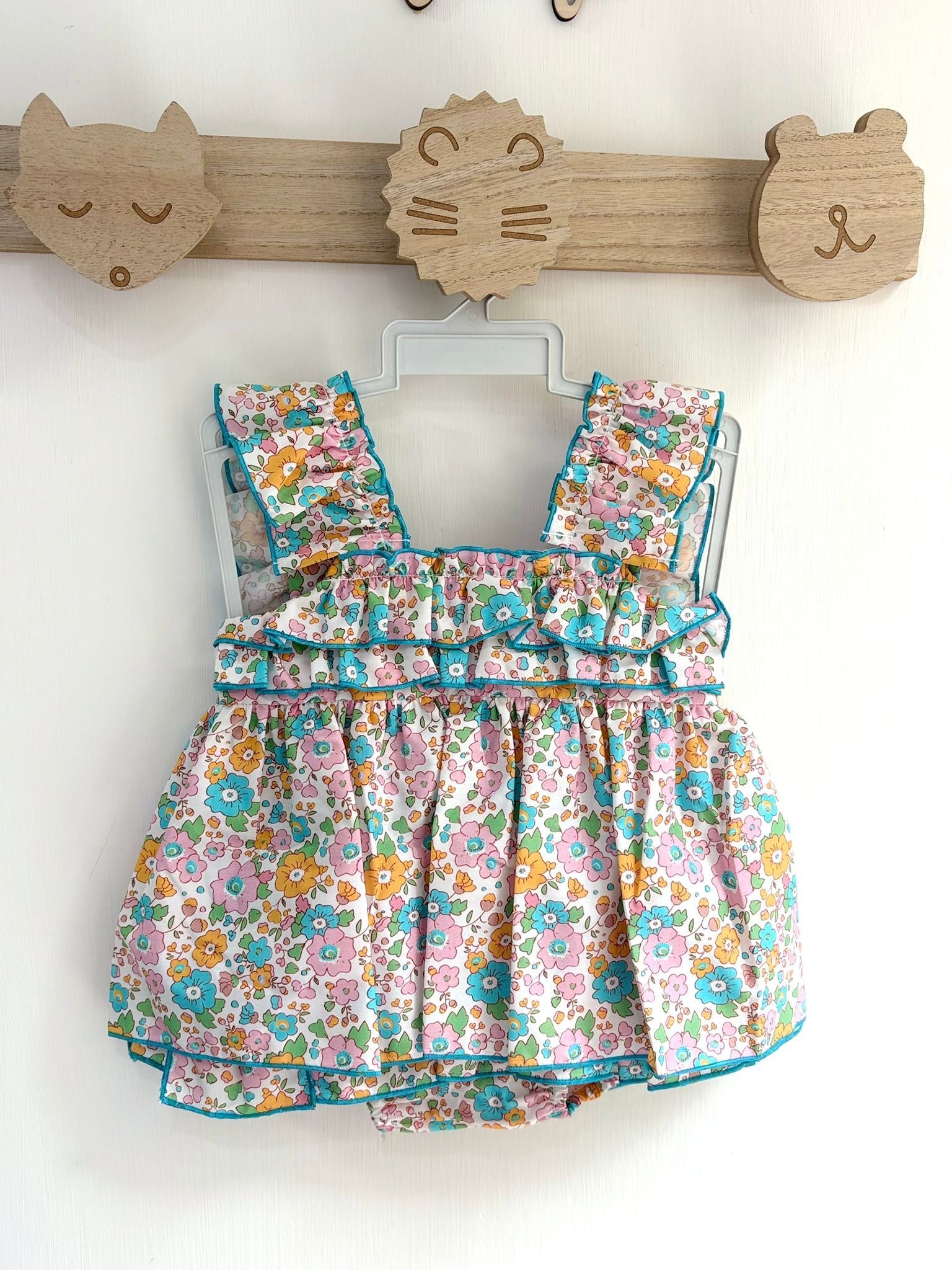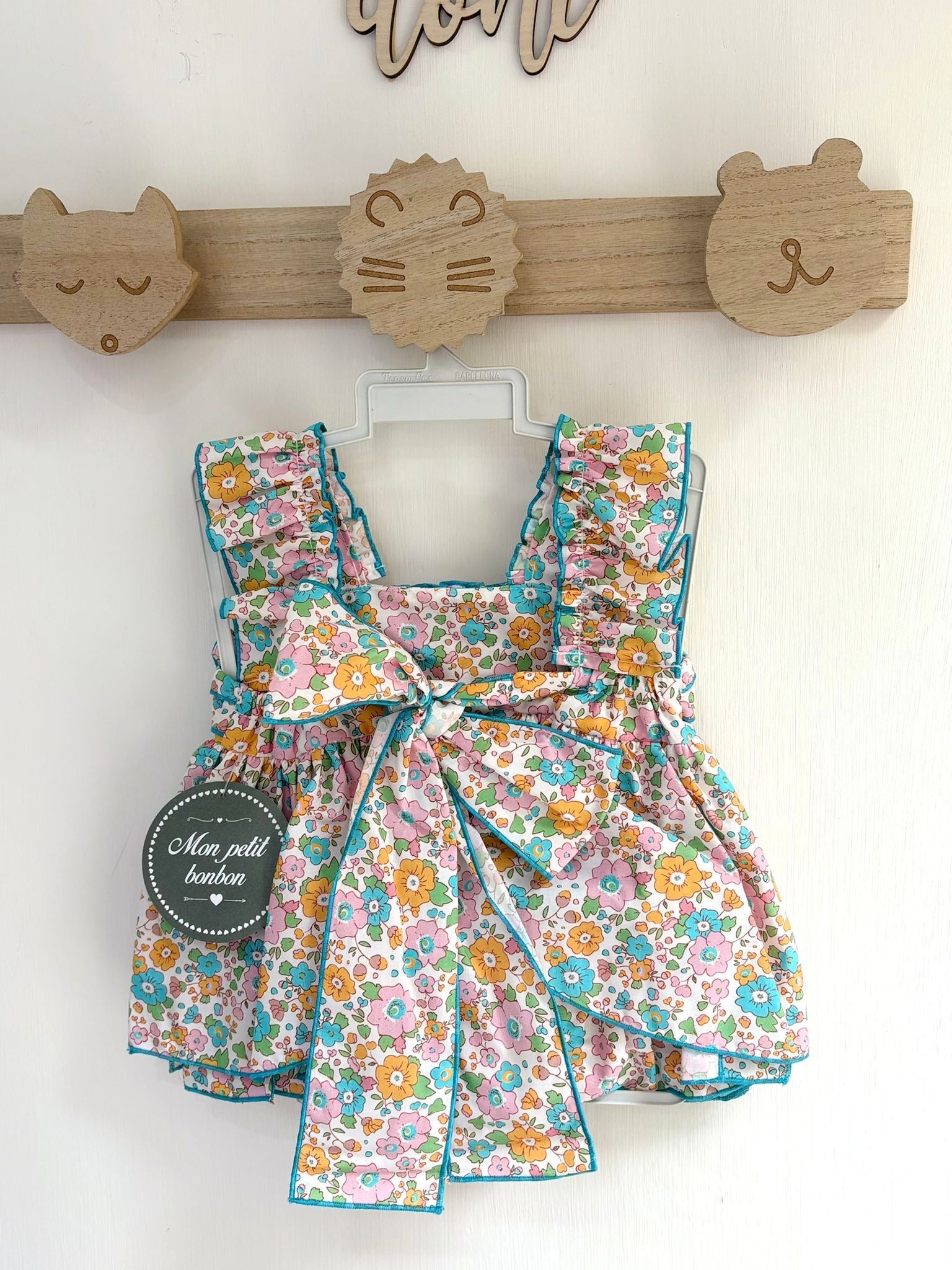 Mini abitino con braga fiorato in cotone con fiocco regolabile sul retro