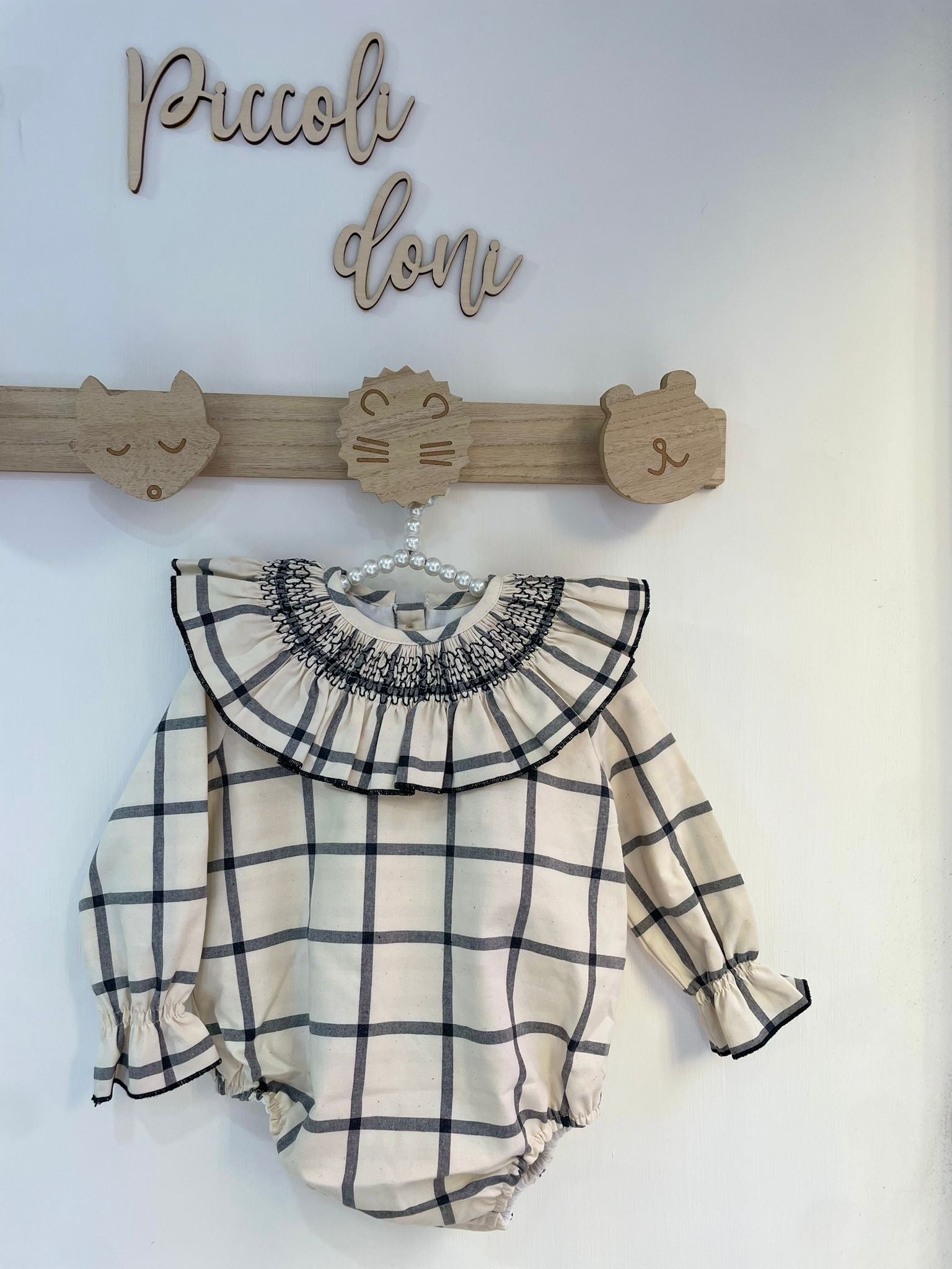 Pagliaccetto con collo largo punto smock rifinito a mano in cotone invernale