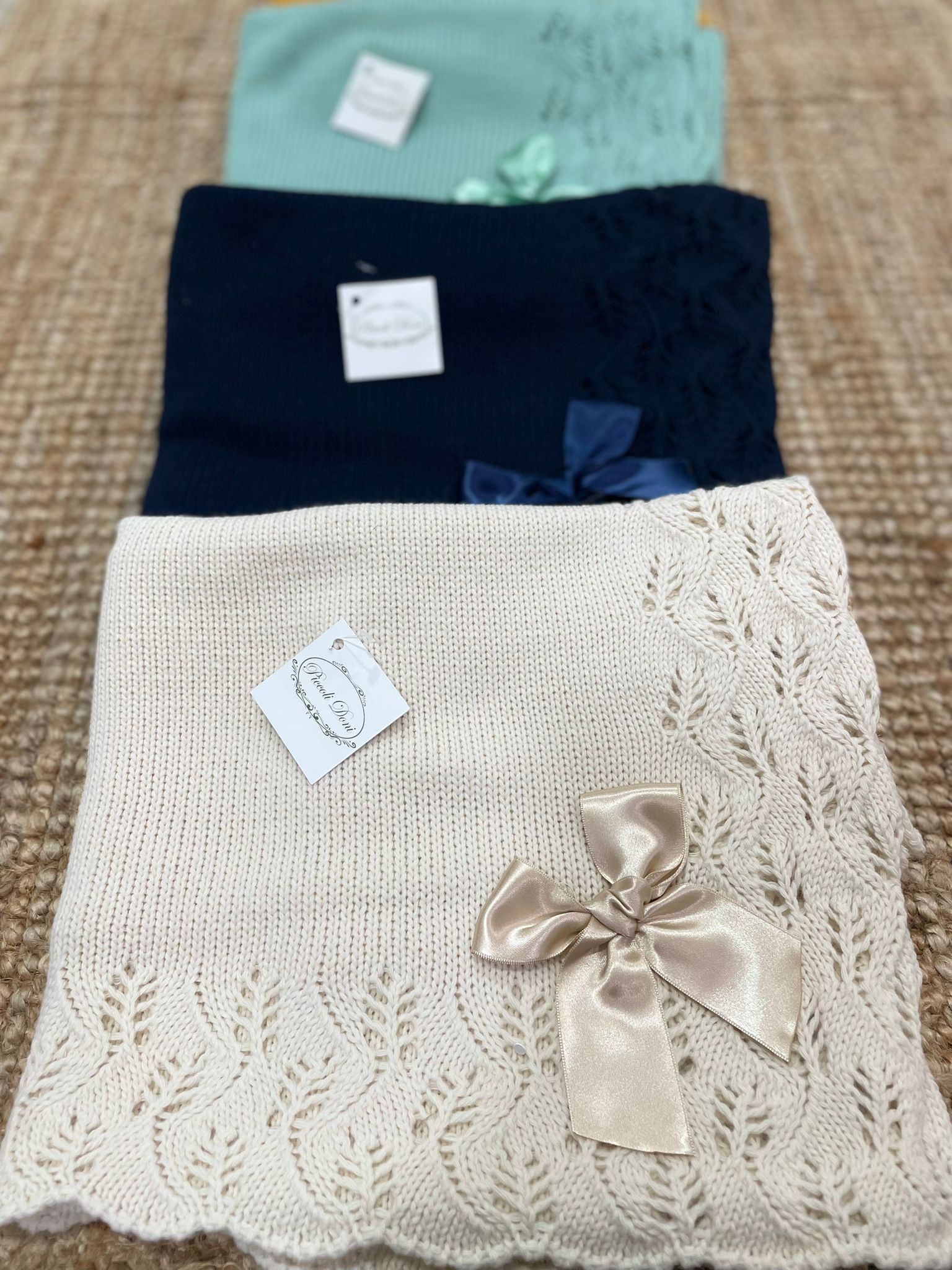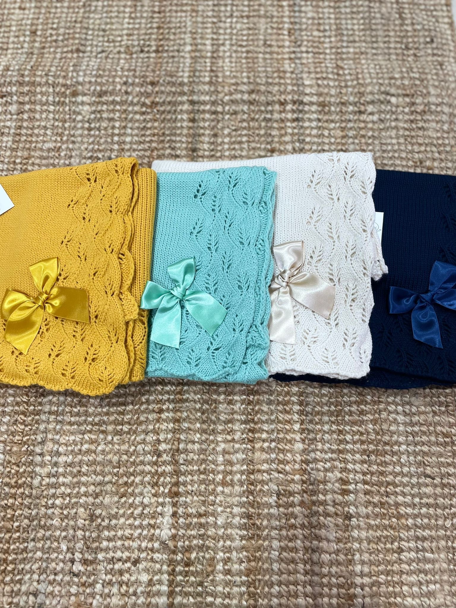 Scialle in acrilico invernale con traforatura e fiocco