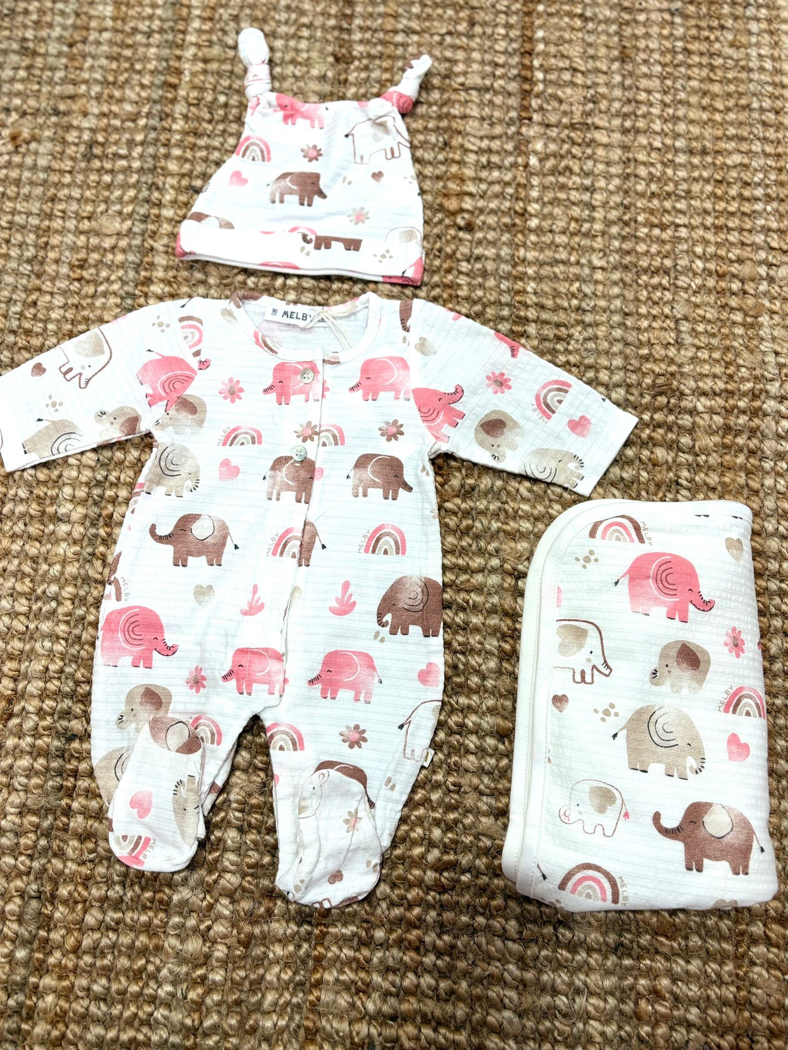 Set nascita composto da tutina,cappello e copertina in cotone di mussola