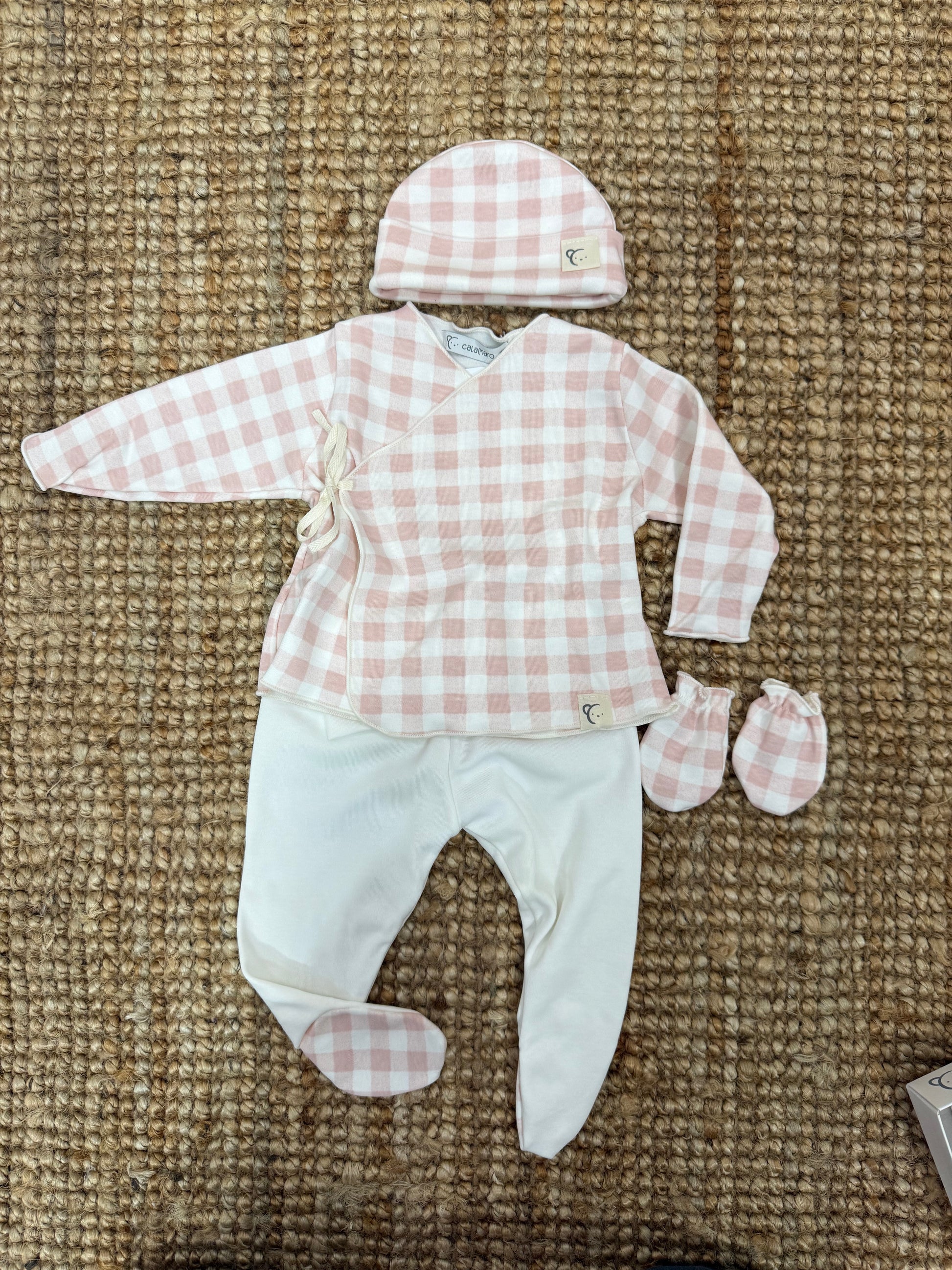 Set clinico in cotone composto da incrociati a,ghettina,cappello e muffole