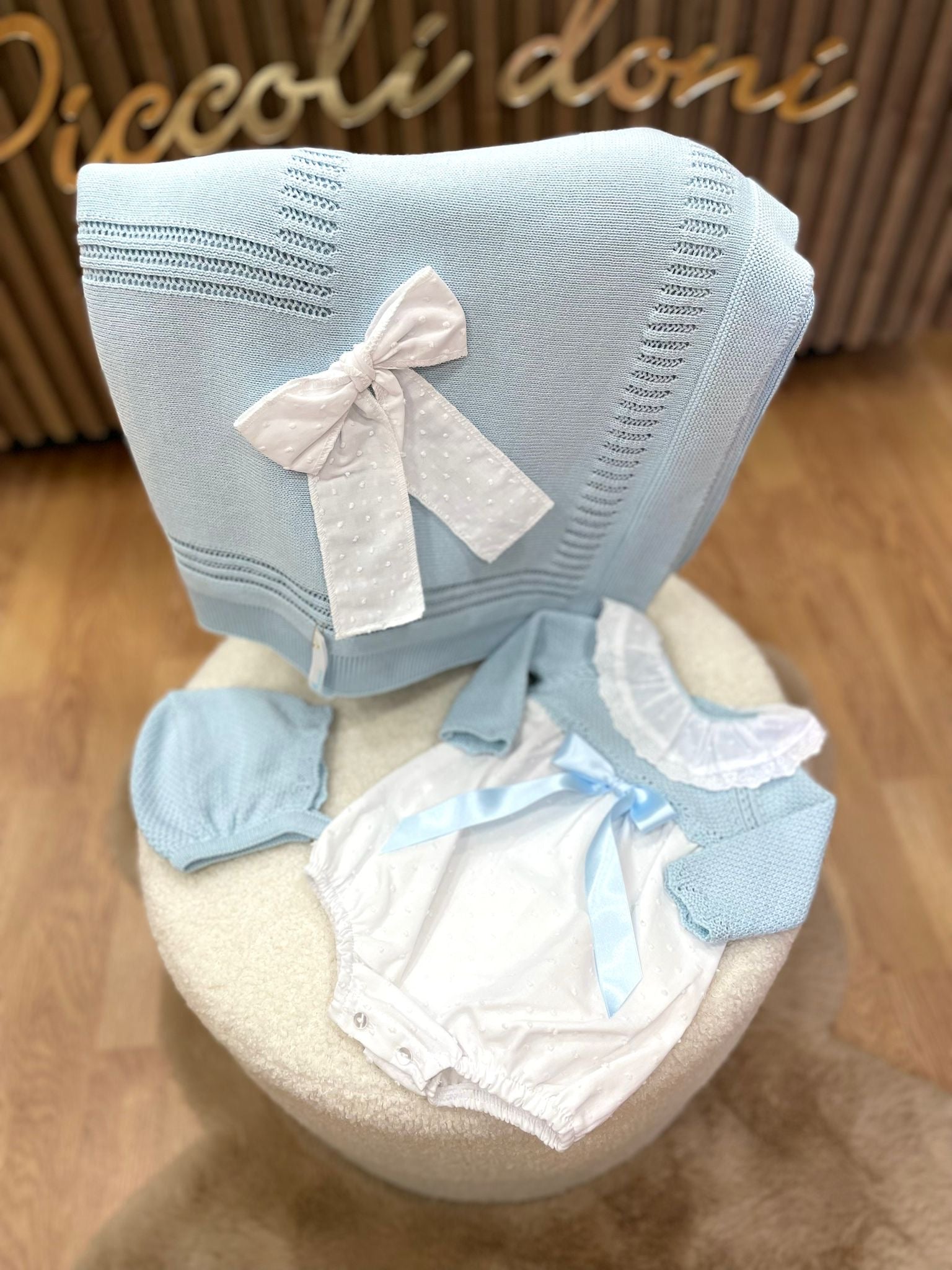 Set nascita compreso di pagliaccetto,cuffia e scialle in filo e cotone