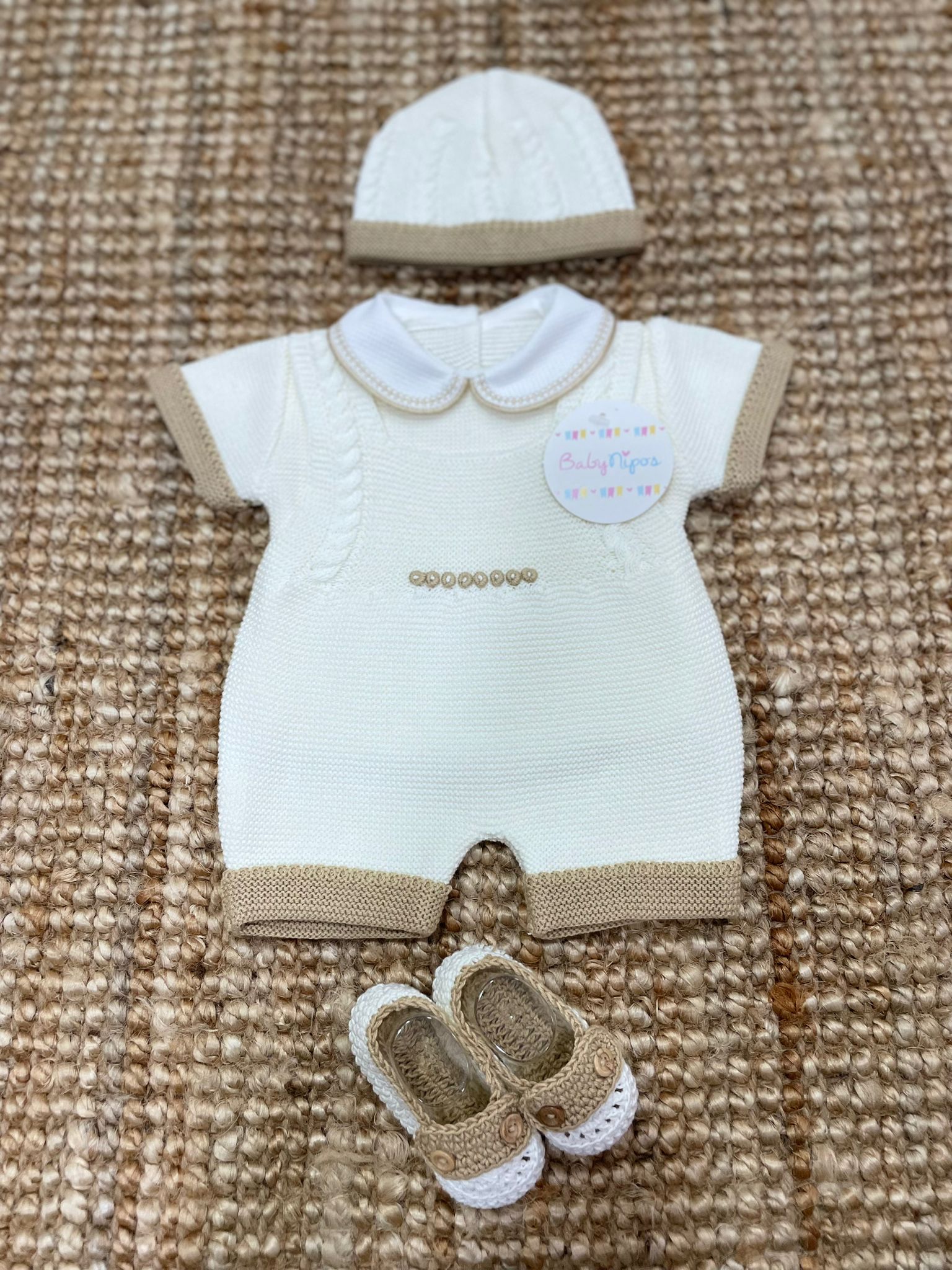Salopette con magliettina, cappello e scarpine 100% filo di cotone