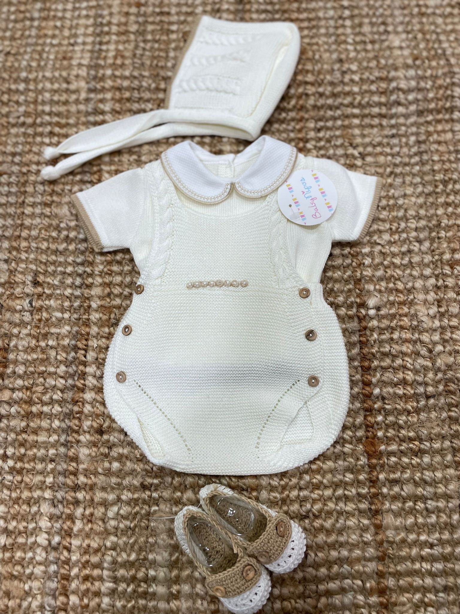 Salopette con magliettina,cuffia e scarpine 100% filo di cotone