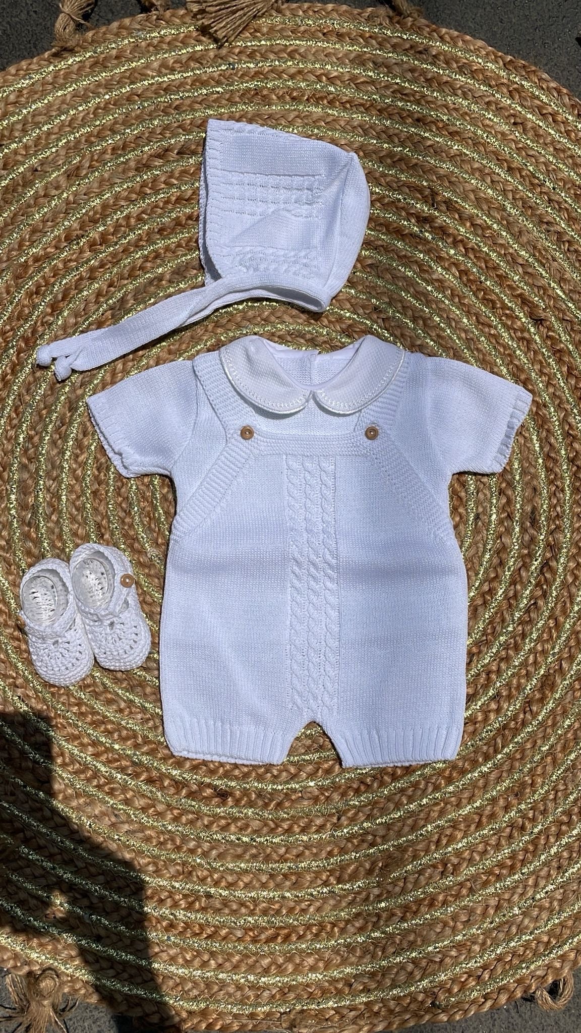 Salopette con maglietta in filo in coordinato cuffia e scarpine