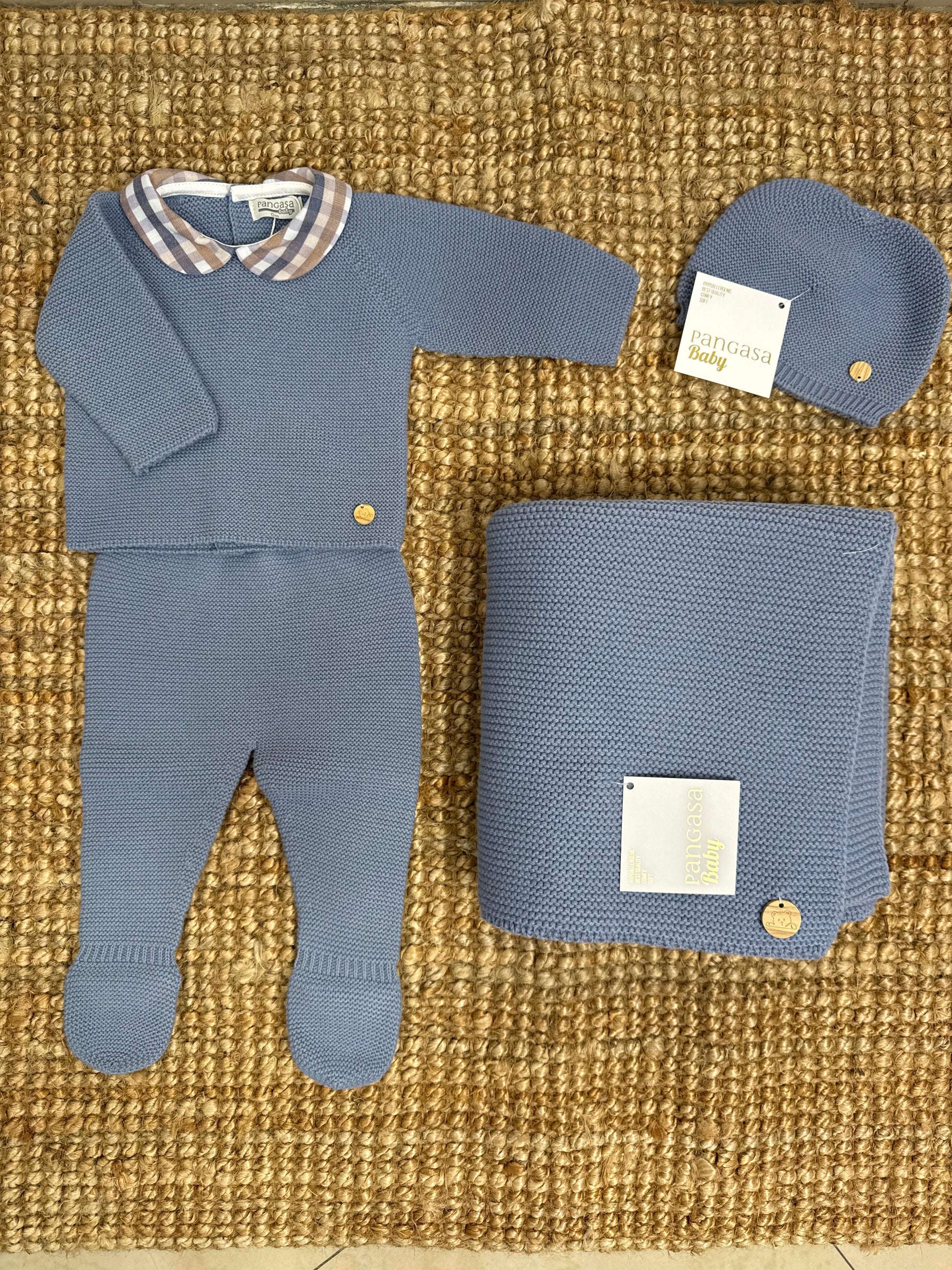 Coordinato nascita composto da maglioncino,ghettina,copertina e cappello
